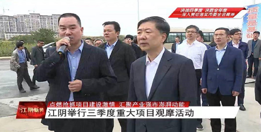 2020年10月20日,江阴市委书记许峰赴江阴高新区观摩重大项目建设,亲临卓尔诺年产6万吨光电通信专用新材料项目现场,关心我司项目进展情况并要求政府相关部门全力做好服务工作,确保企业早竣工、早投产、早见效。